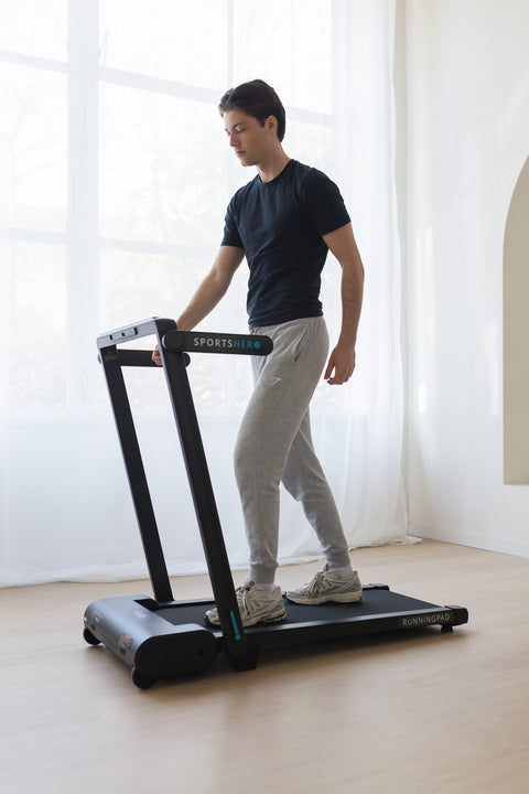 De RUNNINGPAD is supermakkelijk op te bergen! 💪 Dankzij de inklapbare handrail zet je ‘m zo weg onder je bank of tegen de muur. Geen gedoe, geen ruimteverlies – gewoon lopen en opbergen! 🚶♂️✨