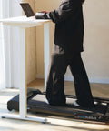 Of je nu een ontspannen wandeling maakt, loopt tijdens je werkdag of een stevige hardloopsessie wilt doen, de RUNNINGPAD PRO beweegt met je mee. Met een topsnelheid van 12 km/u haal je het maximale uit je training 💪. Liever wandelen? Klap de beugel eenvoudig in, zodat je aan je wandeling kunt beginnen.